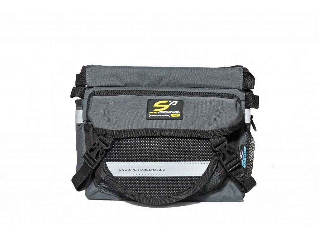 Dvě vnější postranní kapsy - jedna síťovaná, druhá látková - slouží pro převoz svačiny a lahve s pitím. Nad velkou hlavní komorou po rozepnutí zipu můžete objevit praktickou oddělenou kapsu ve formátu A5, ideálně na doklady, mapy, peněženku, průvodce. Velkou čelní kapsu s poutkem na blikačku využijete na mobil, klíče, nebo jiné drobnosti, které je lepší mít oddělené. Nastavitelný popruh pro přenášení na rameni je součástí brašny. Snadno odnimatelný systém QuickFix zaručí jednoduchou manipulaci brašny na cestách.