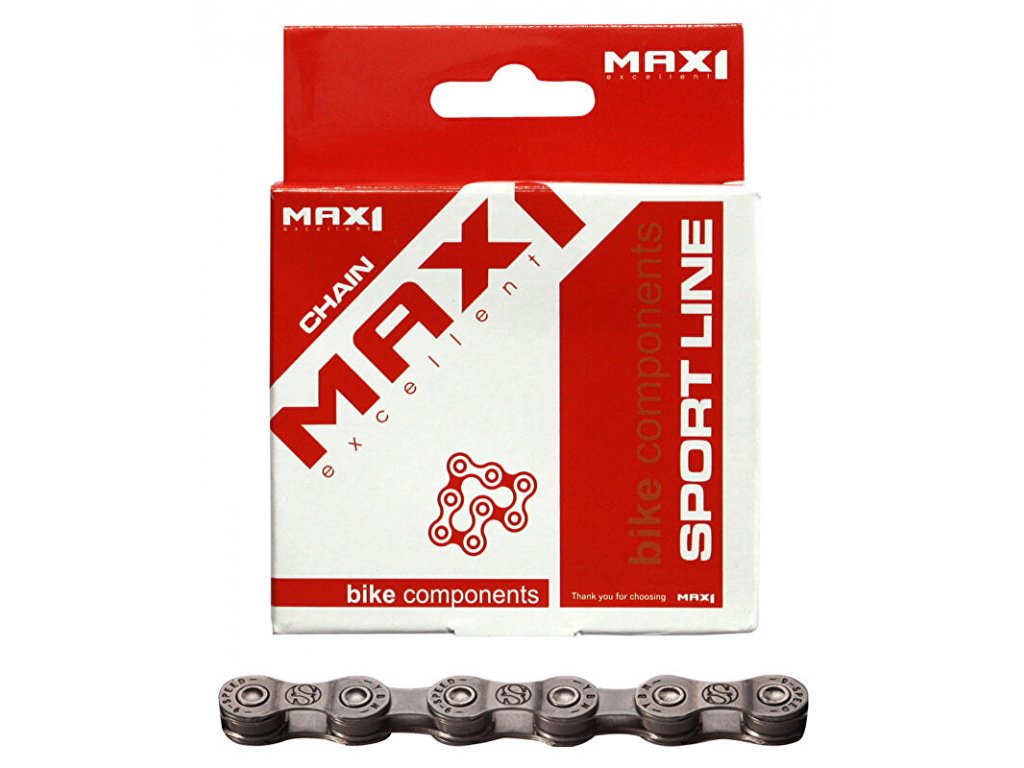 Řetěz MAX1 pro 9ti rychlostní kazety, 116článků, se spojkou, šedý, baleno v krabičce.