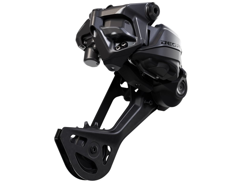 - Klínový tvar: Nový klínový tvar dosud nejodolnější přehazovačky Shimano se vyhýbá přímějším nárazům a v případě nárazu se hladce odrazí od kamenů.