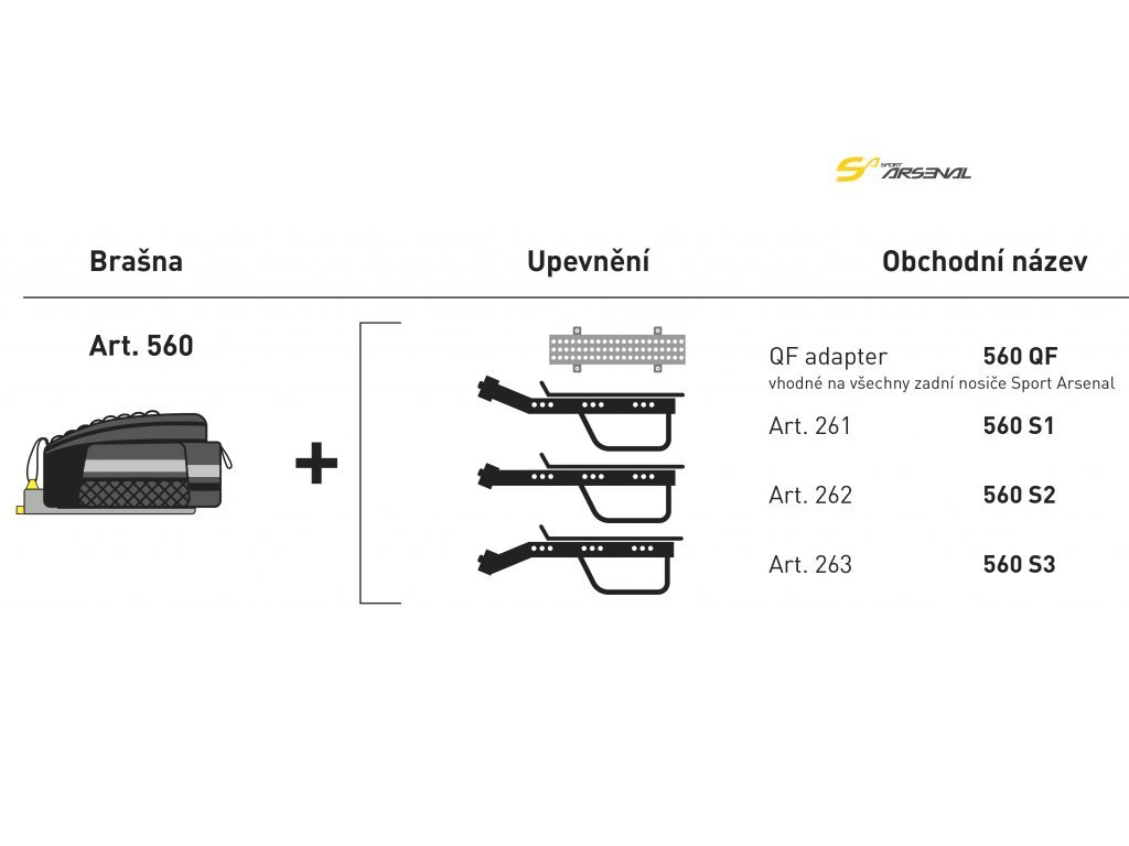Usnadněte si vaše cyklistické výlety s praktickým a spolehlivým setem Sport Arsenal brašna + nosič 560 QuickFix!